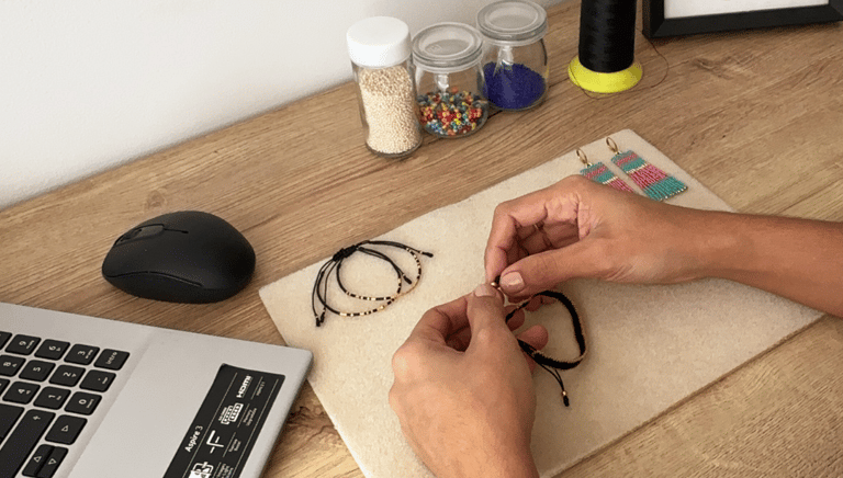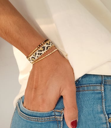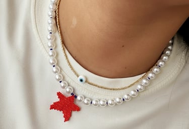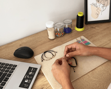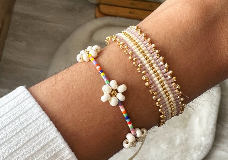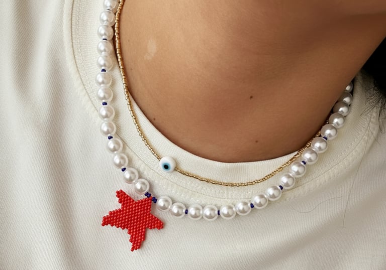 Usamos materiales de alta calidad como Delicas miyuki, mostacilla checa, murano y perlas, herrajes en golfí y acero, combinados con hilos resistentes para garantizar accesorios duraderos y elegantes.